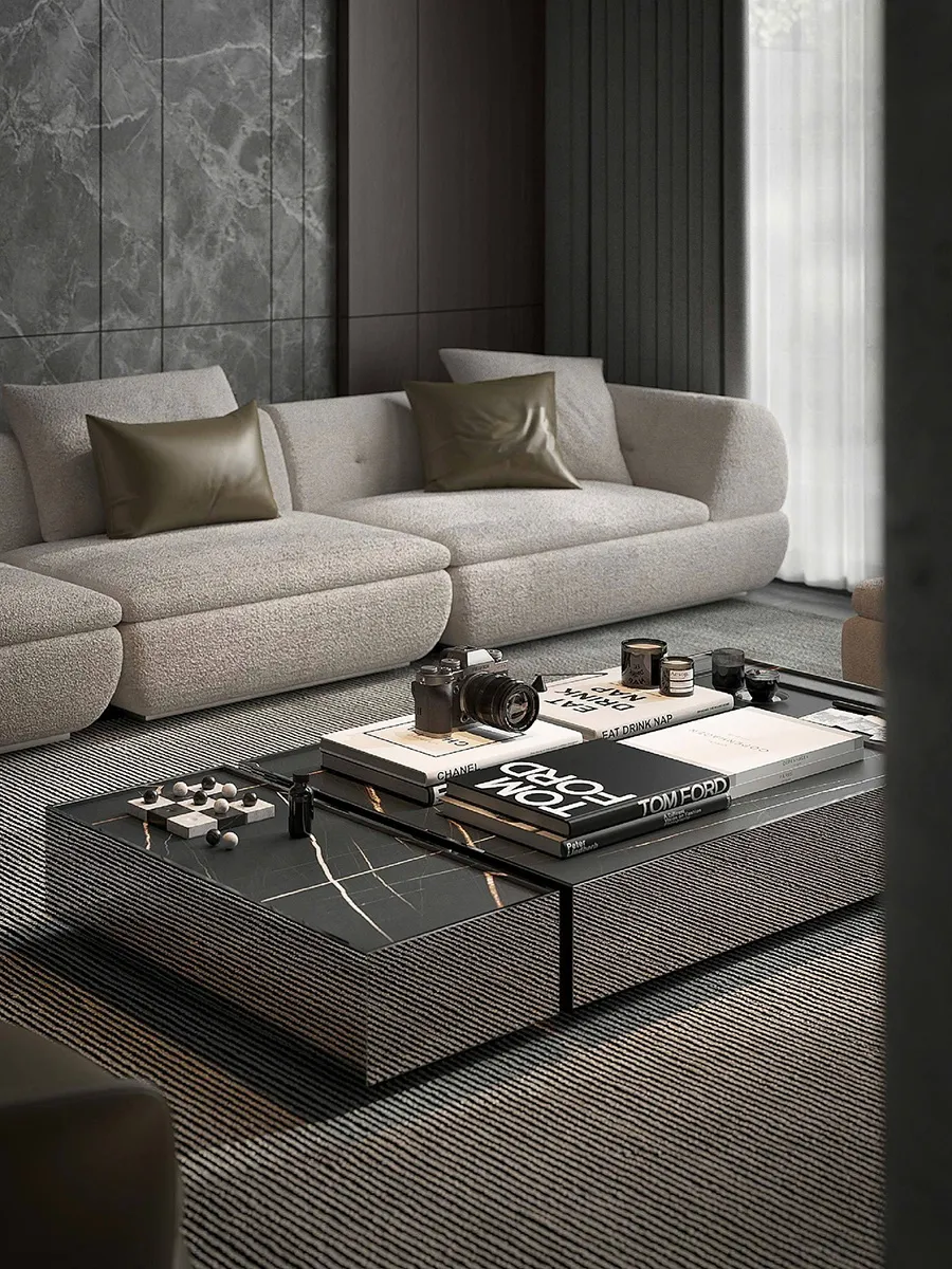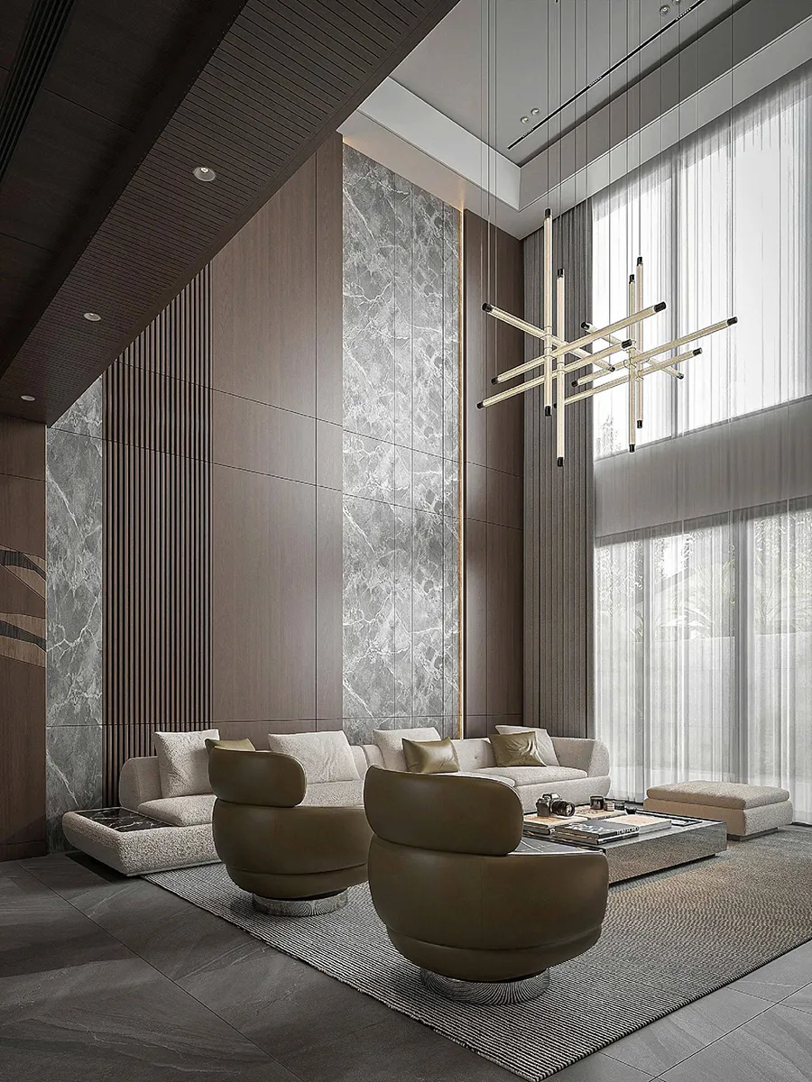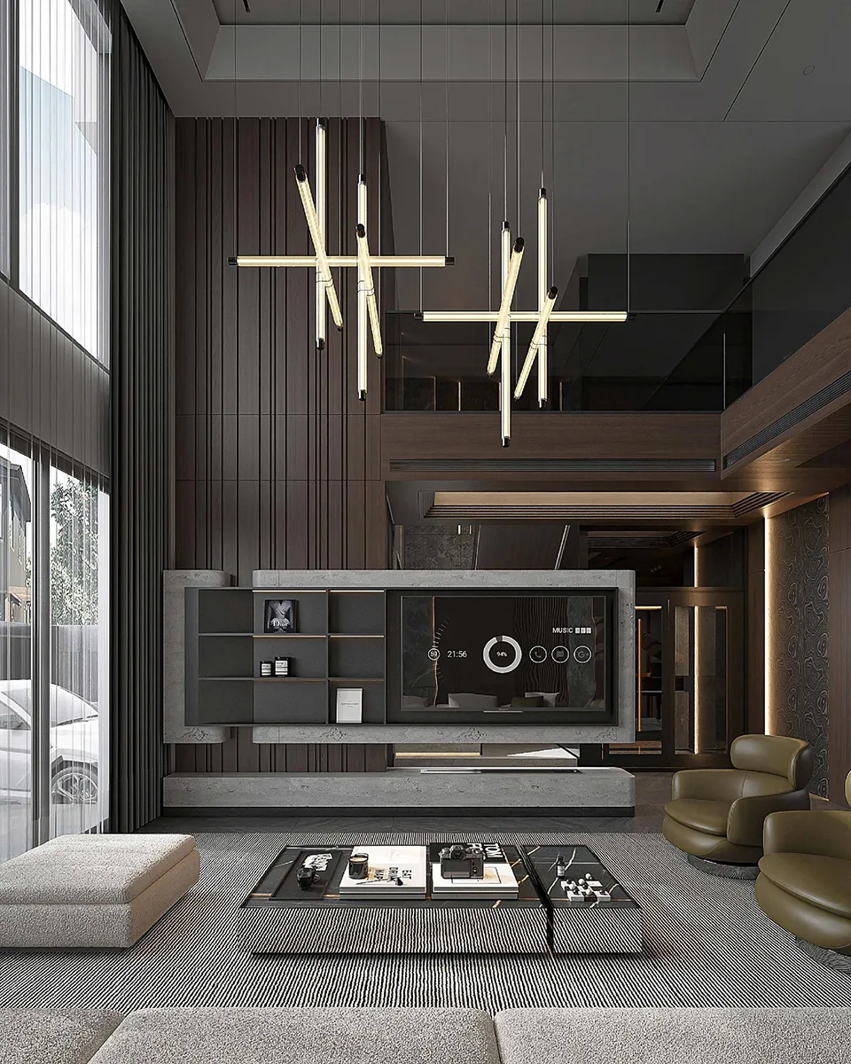 Để hiện thực hóa điều đó, phong cách Modern Luxury đã được lựa chọn làm kim chỉ nam. Chúng tôi khước từ những chi tiết rườm rà, thay vào đó tập trung vào chất cảm của vật liệu thượng hạng. Sự hiện diện của mặt đá tự nhiên nguyên vân nhập khẩu Brazil, các dải kim loại mạ PVD vàng bóng bẩy và hệ vách ốp gỗ công nghiệp An Cường chất lượng cao mang đến một vẻ đẹp kiêu kỳ nhưng không hề phô trương.