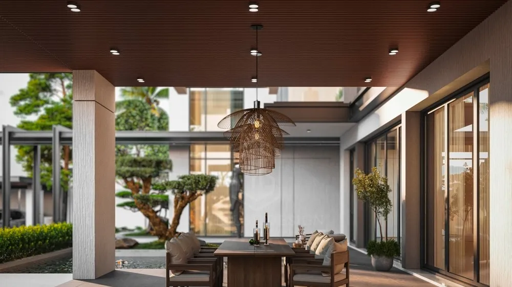 Kiến trúc biệt thự mái Nhật bố trí hệ lam gỗ chống nắng và lấy gió tự nhiên