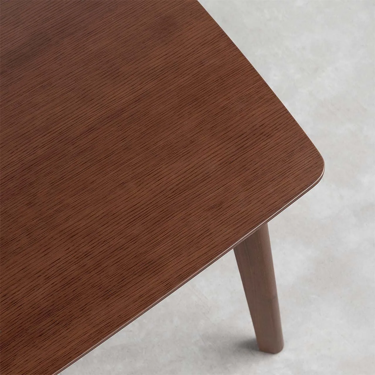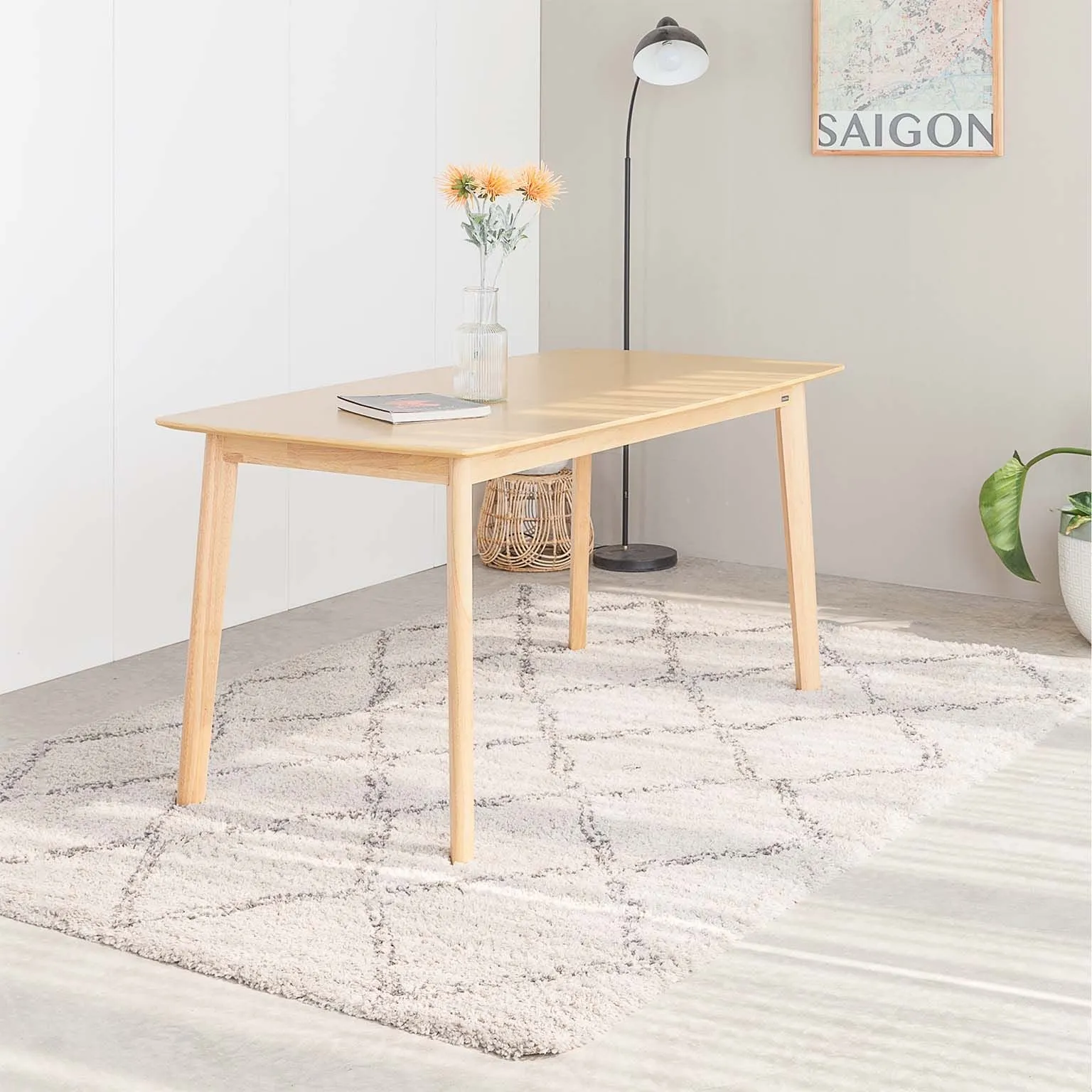 Veneer gỗ cao su trên mặt bàn giúp bề mặt nhẵn mịn và màu sắc đẹp tự nhiên đầy hiện đại.