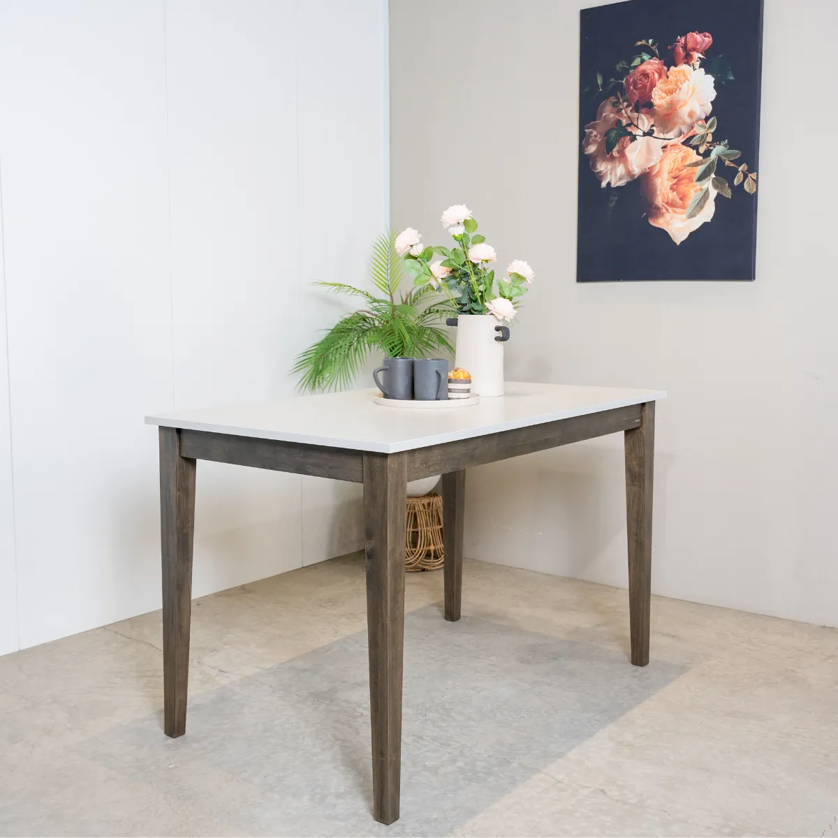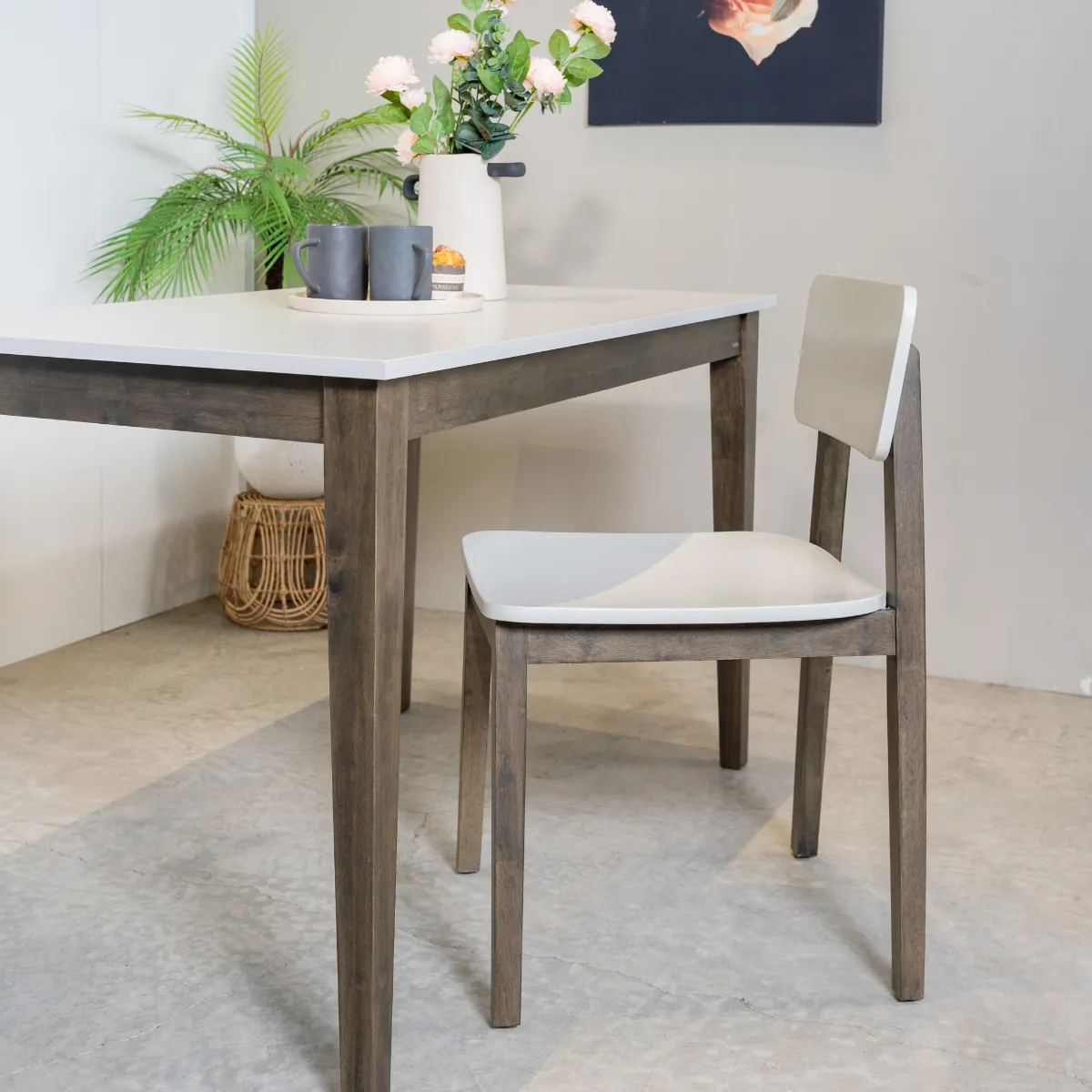 Bàn ăn GRENAA được thiết kế đơn giản kết hợp 2 màu tương phản nhau tạo sự hiện đại đặc trưng của phong cách.