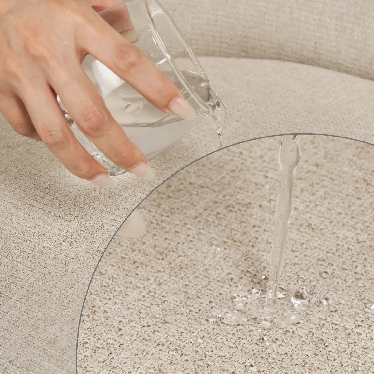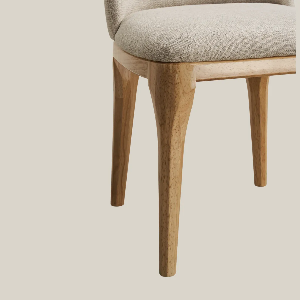 Khung ghế từ gỗ cao su tự nhiên, vải bọc polyester kháng bụi và chống nhăn – đảm bảo ghế luôn giữ dáng đẹp và dễ vệ sinh sau thời gian sử dụng.