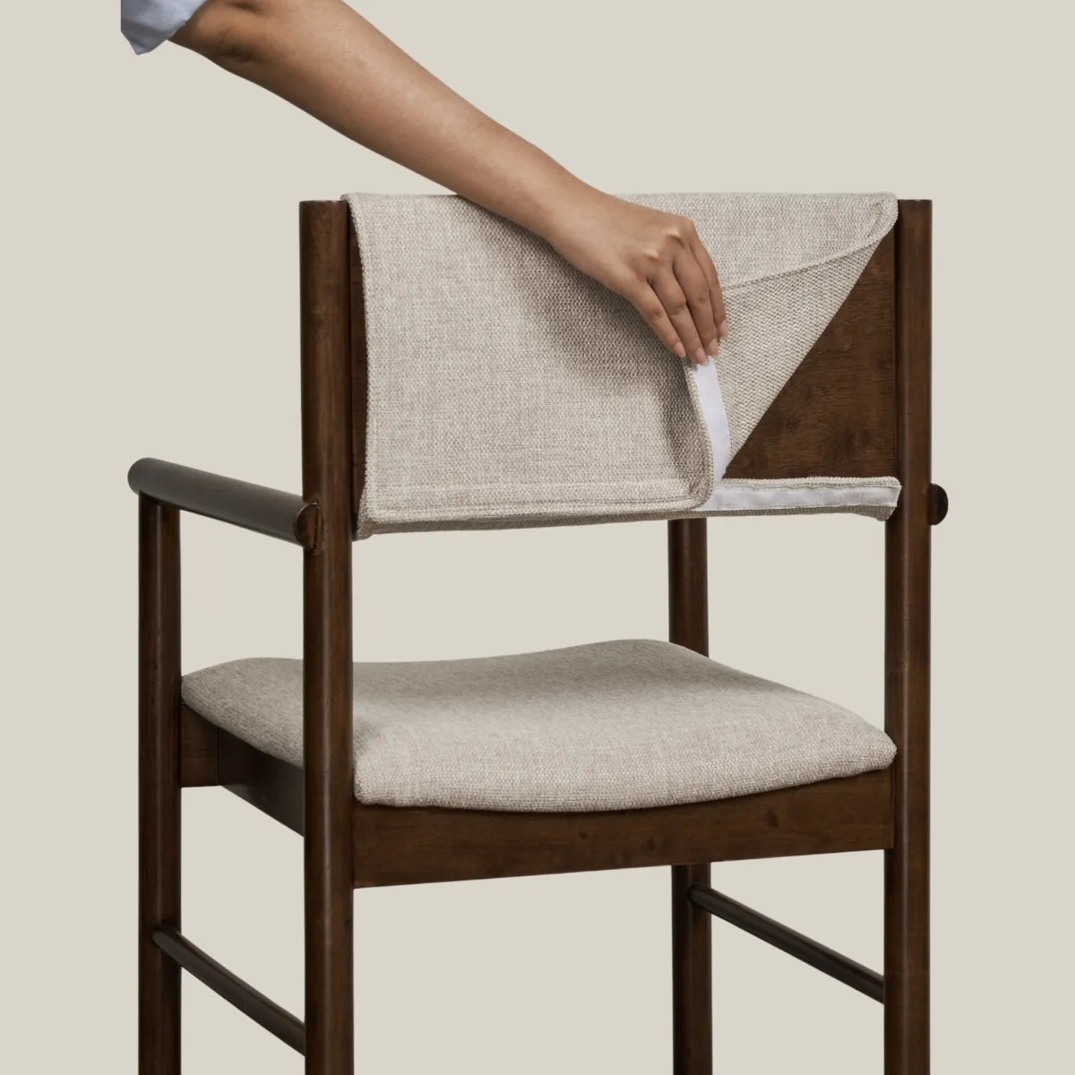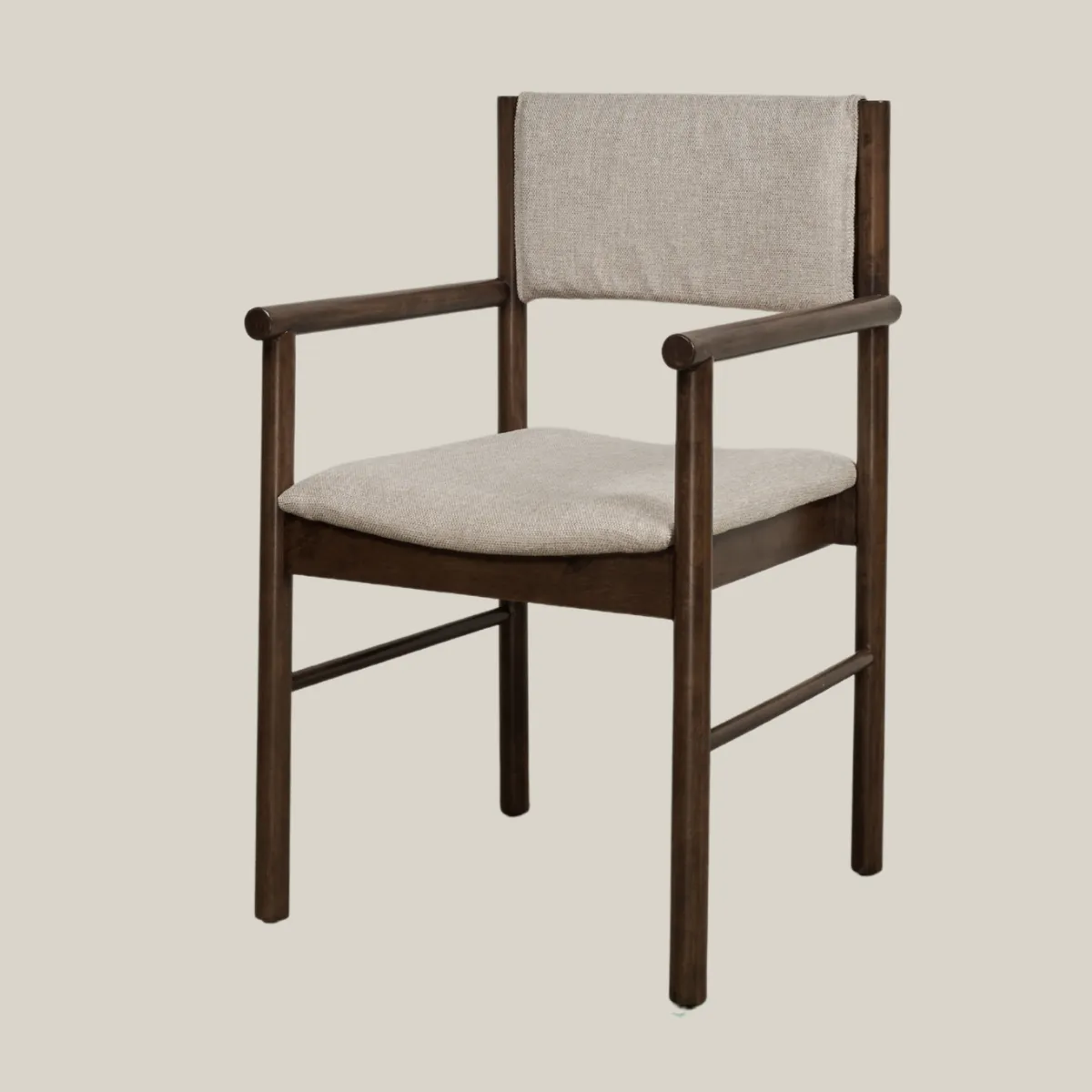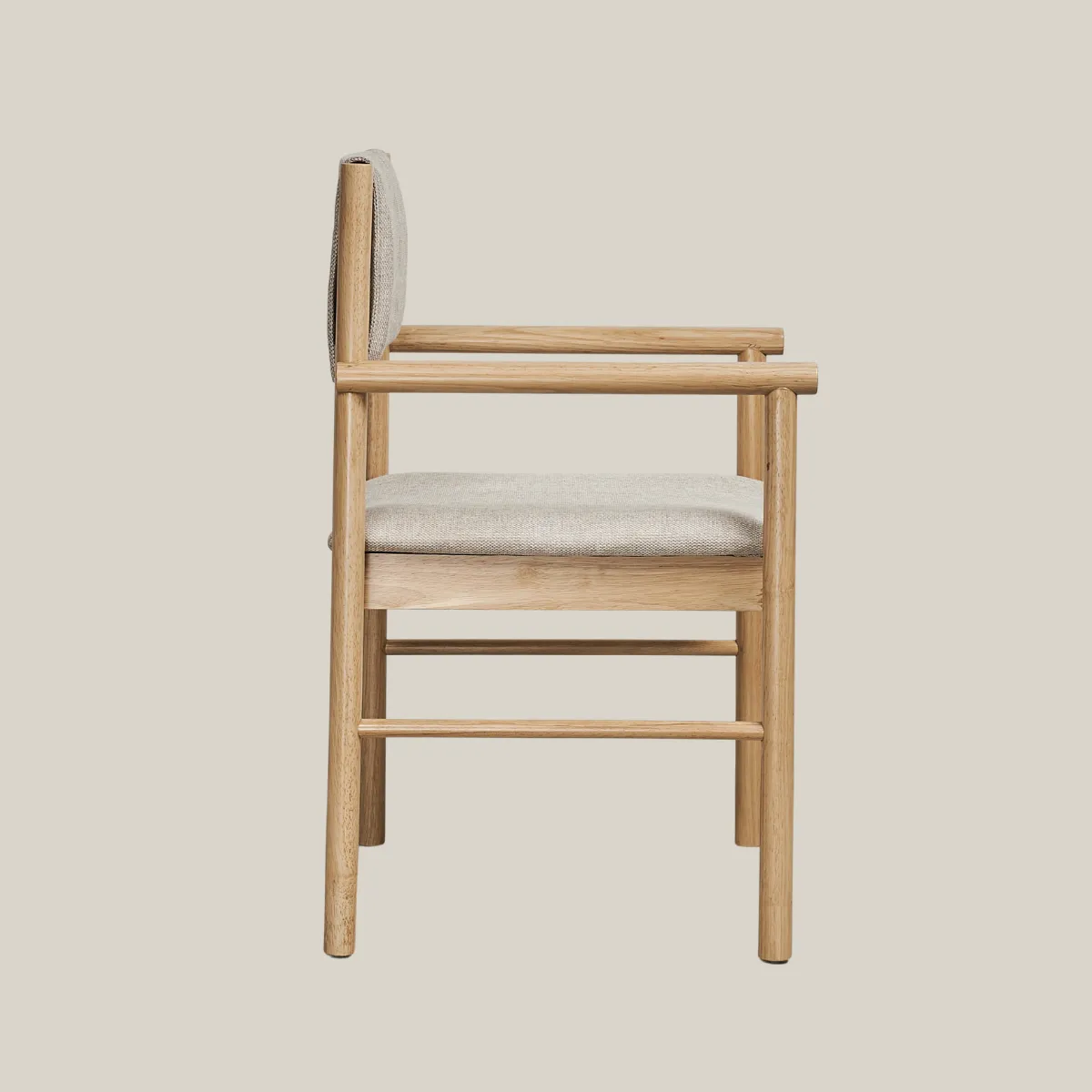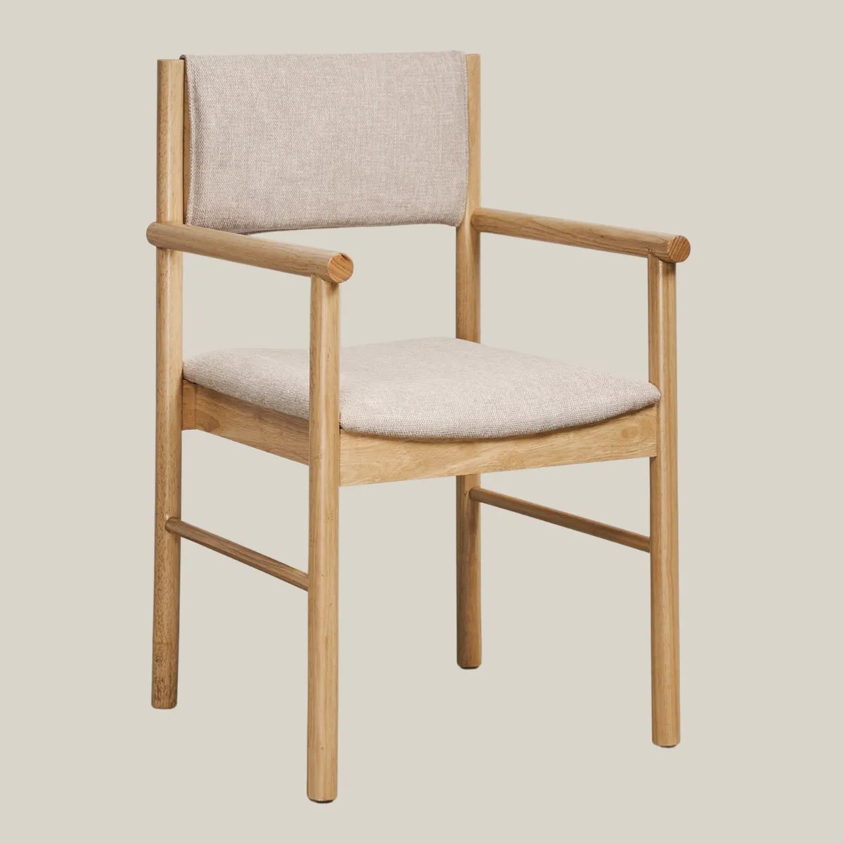 Phần tựa lưng khung gỗ bọc nệm không chỉ tăng tính thẩm mỹ mà còn mang lại cảm giác tựa êm ái, dễ chịu – dù là bữa ăn kéo dài hay cuộc trò chuyện cuối ngày. Thiết kế tay vịn bo tròn thanh lịch giúp LYH phù hợp với nhiều vai trò: từ ghế ăn, ghế cafe đến ghế tiếp khách nhẹ nhàng.