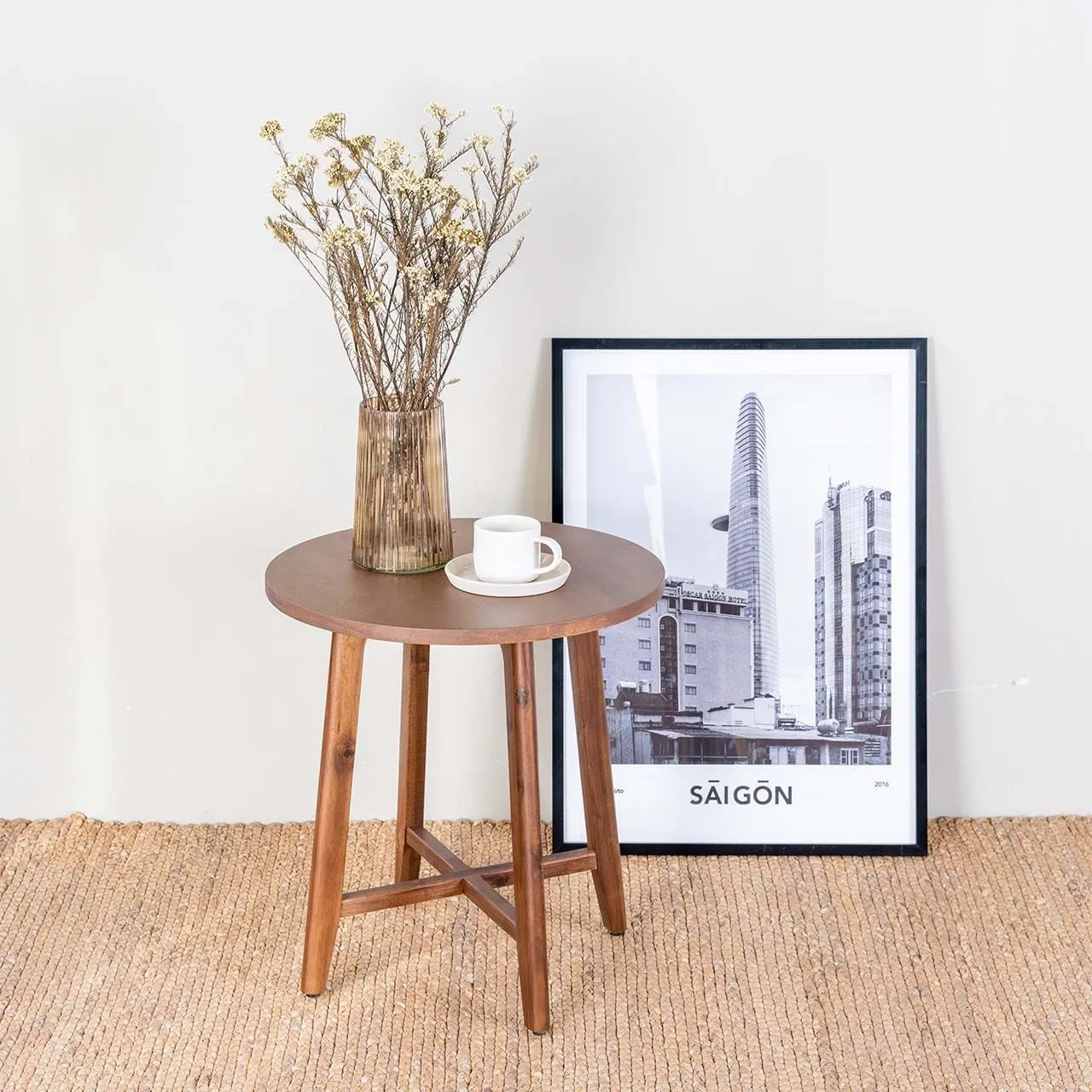 Bàn trà tròn cao đặc trưng