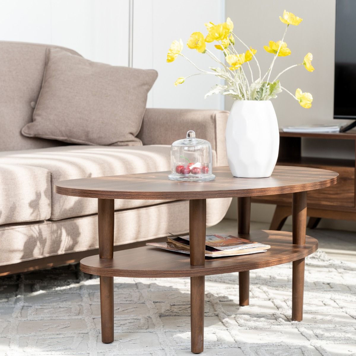 - Cấu trúc của bàn sofa rất chắc chắn, với layout 2 tầng có kệ bên dưới rất lý tưởng để đặt tạp chí, bộ ấm trà,…
