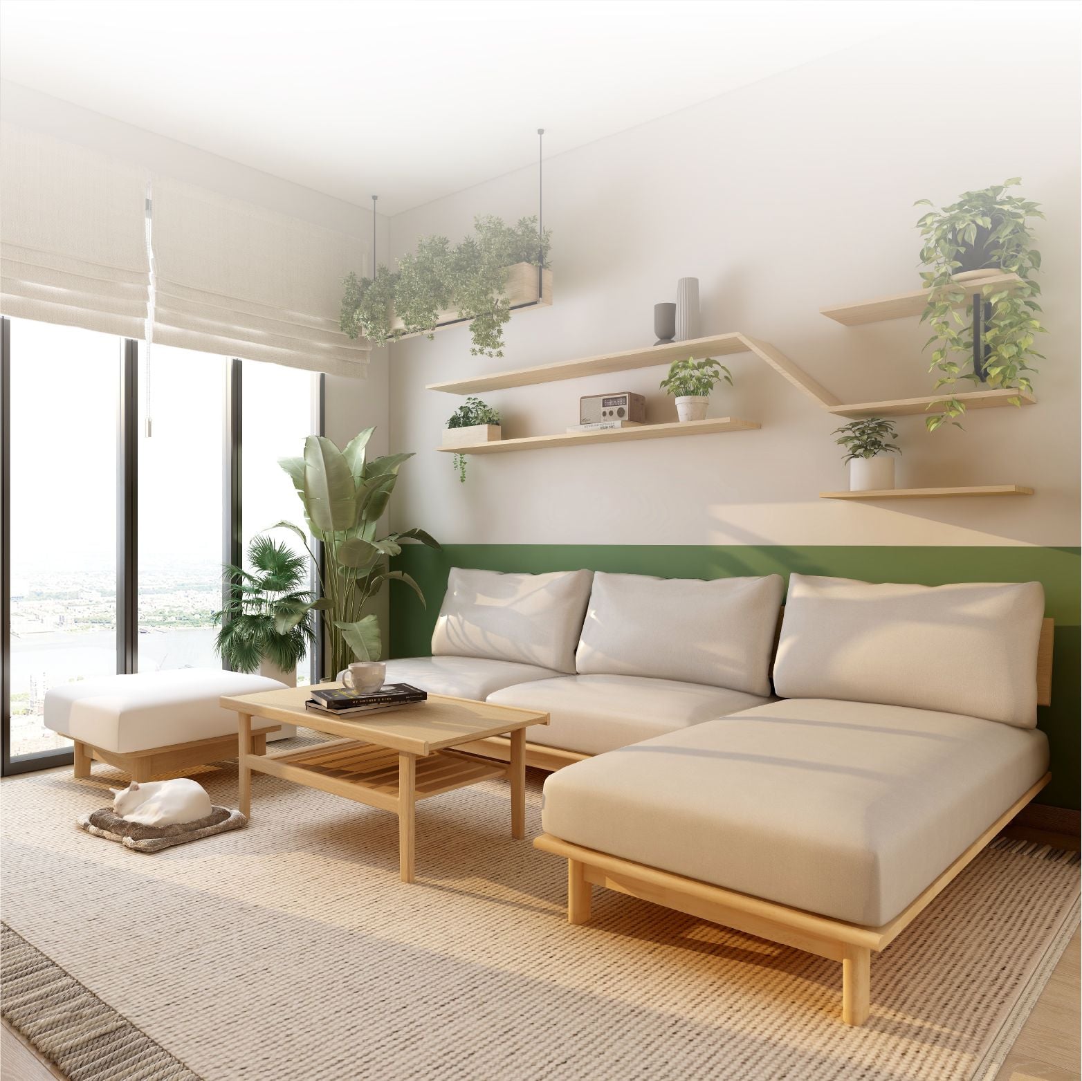 - Sofa góc có kích thước rộng rãi thoải mái, với thiết kế tinh giản giúp tối ưu hóa diện tích cho nội thất phòng khách