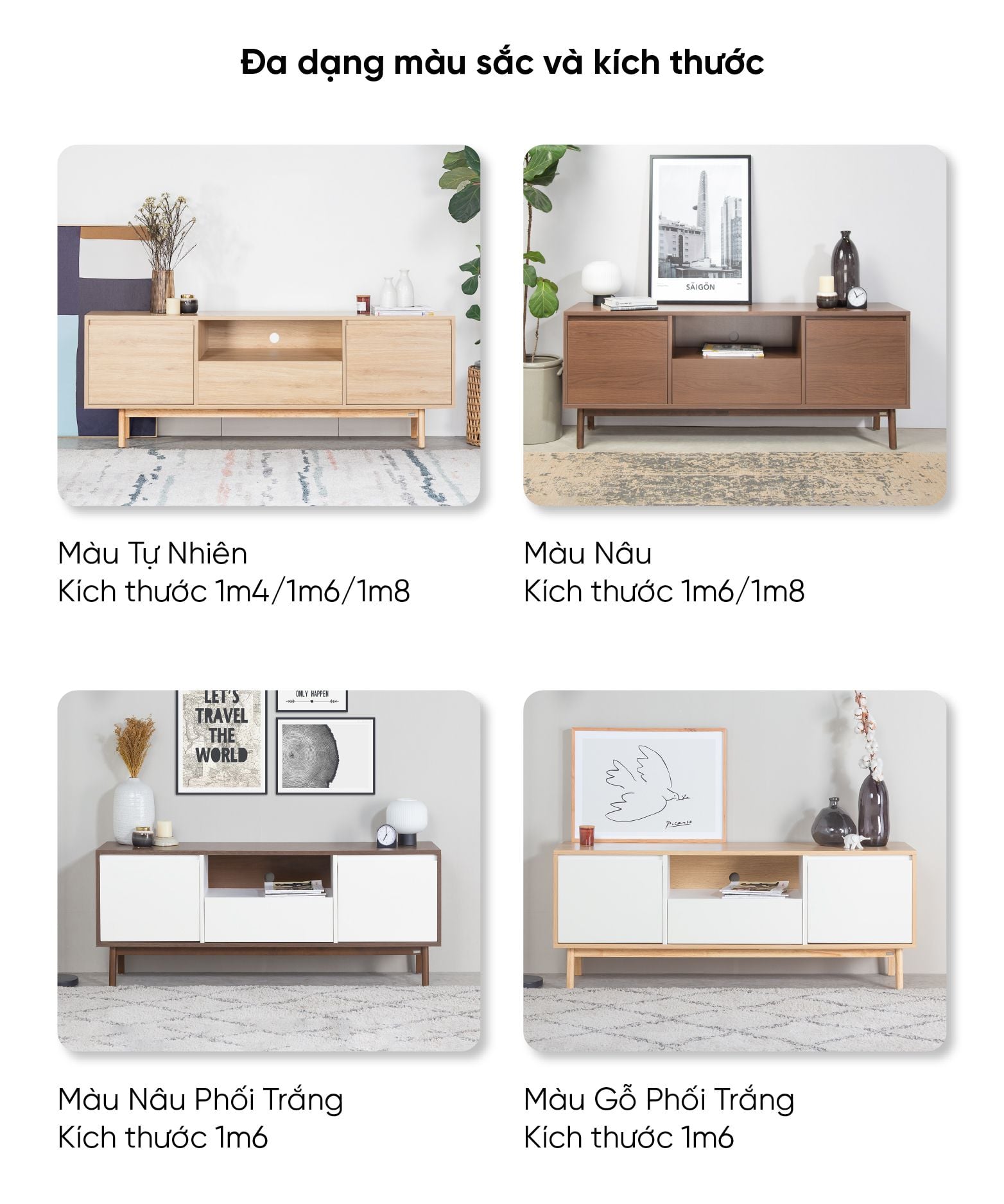 Tủ kệ tivi thích hợp với kích thước Tivi tiêu chuẩn từ 43 inch trở lên.