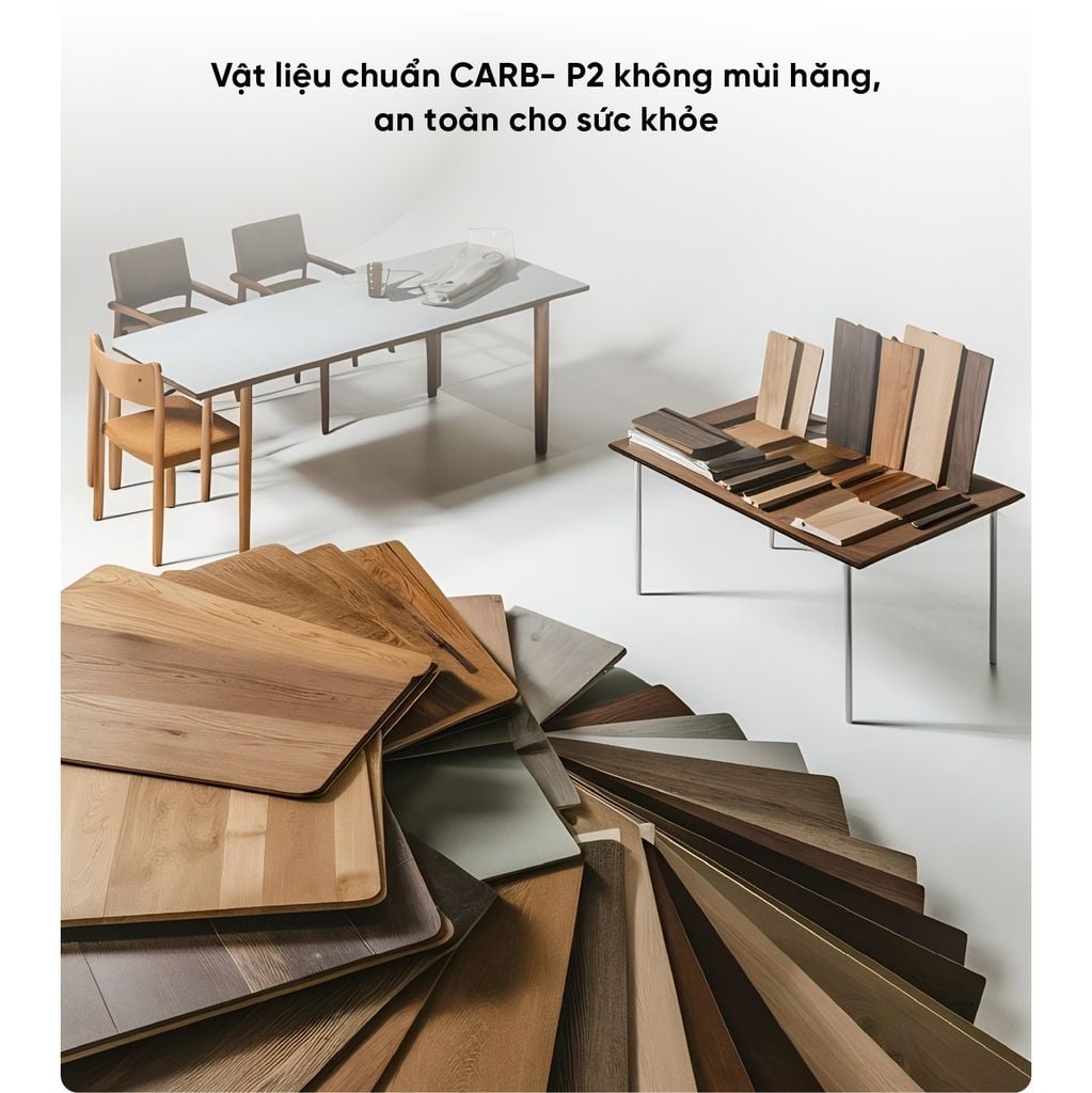 Sản phẩm sử dụng chất liệu gỗ công nghiệp (PB, MDF) đạt chuẩn CARB-P2 an toàn tuyệt đối cho người sức khỏe người dùng và đạt chứng nhận FSC bảo vệ và phát triển rừng.