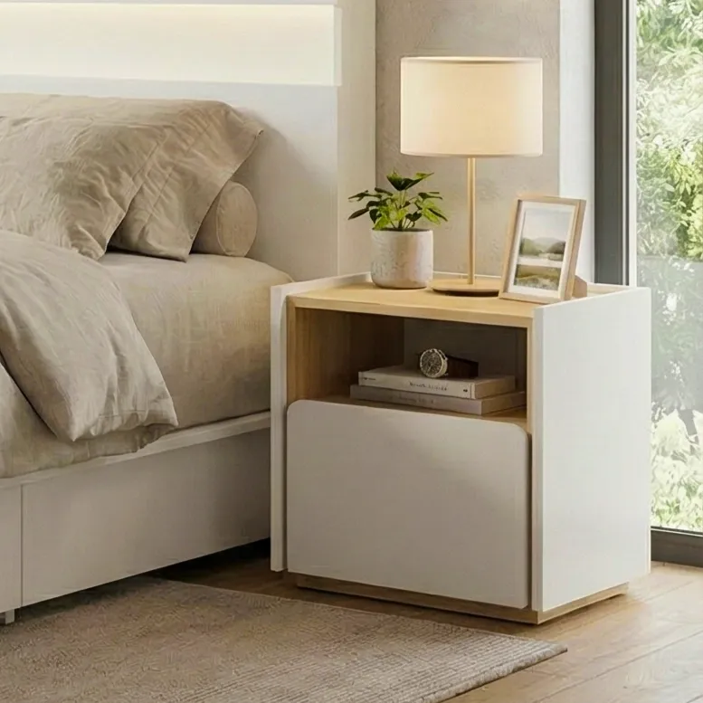 - Mặt tủ rộng rãi: Phù hợp đặt đèn ngủ, ly nước, khung ảnh hoặc vật dụng cá nhân cần thiết trước khi đi ngủ.