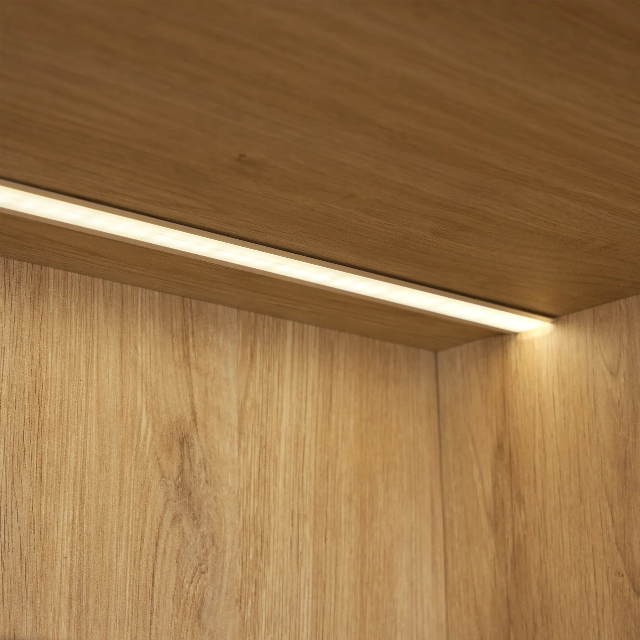 - Bố trí đèn LED các ngăn kệ tạo hiệu ứng “trưng bày phụ kiện cao cấp”