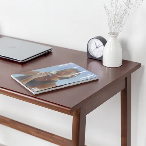 Bàn làm việc có kích thước vừa phải, gọn gàng, không chiếm quá nhiều diện tích, độ rộng vừa đủ có thể để được nhiều vật dụng như: tài liệu, máy vi tính, laptop, sách.